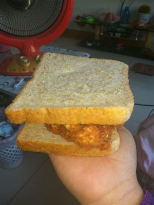 奥尔良腌料水泡开,放入鸡胸肉,腌制一晚上