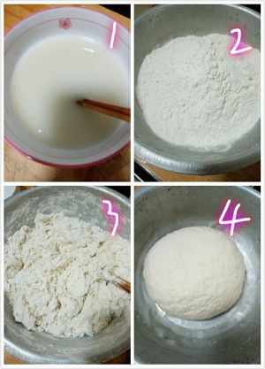 用温水把酵母化开,均匀倒在面粉上,再加适量清水,用筷子把面粉拌成絮状,开始下手揉面,直至表面光滑不粘手;