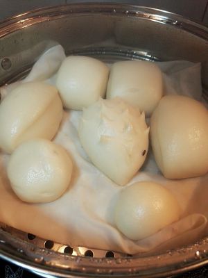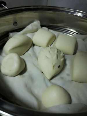这是我做好造型醒发好的图,跟前面的图对比有明显的膨大,就可以开水上锅蒸了