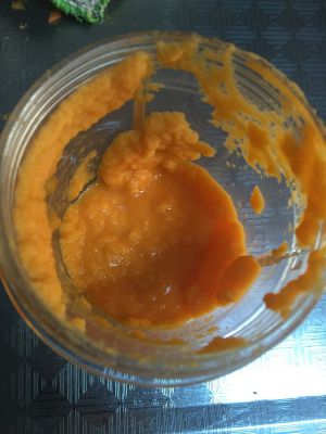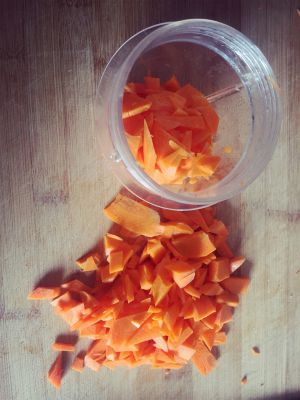 一根胡萝卜切碎,用料理机加100克牛奶打成稀的糊糊