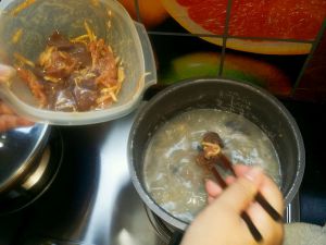 准备另一半姜丝放粥里煲出味,大约10min