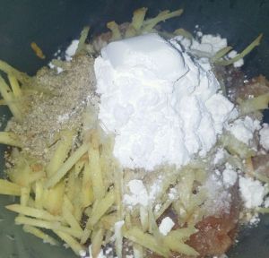放入盐、生粉、胡椒粉捞匀