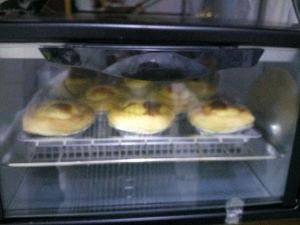 从冰箱取出蛋挞皮,倒入蛋挞液9分满。
