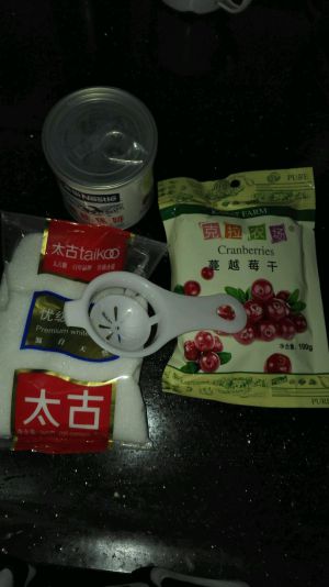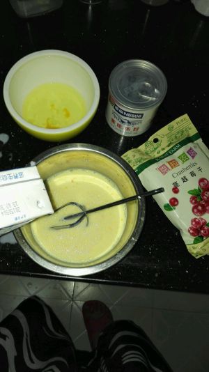 再舀到蛋挞皮里,撒几颗蔓越莓干到上面,蛋液只要八分满左右就可以了,太满加热后会溢出来的,烤箱200度预热,烤30分钟左右就熟了