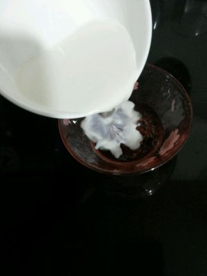 然后加入牛奶适量,搅拌均匀。倒入杯子里