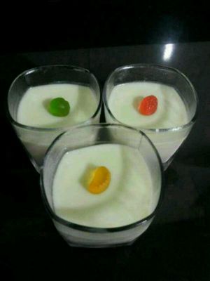在融化的QQ糖中放入牛奶适量(根据个人喜好)搅拌均匀 放入冰箱的冷藏室待其凝固