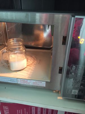 取部分牛奶和棉花糖放杯子里微波炉叮40秒,20秒时拿出搅拌。待棉花完全糖融化倒出备用,其余的棉花糖和牛奶同样方法分几次融化。