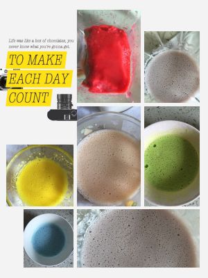分成7份倒入碗中,调成自己喜欢的7种颜色。