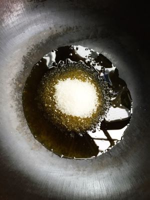 锅里倒少许油,加入白糖,开始熬