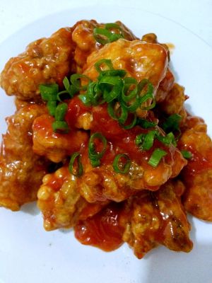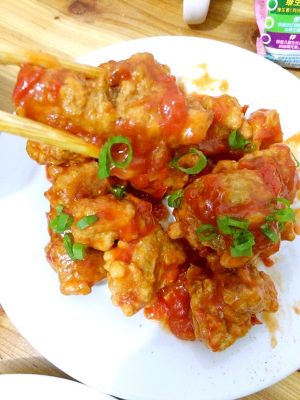 番茄切丁,做酱料用:热锅加少许油,放番茄翻炒出红油,加少许番茄酱、白糖继续翻炒,另准备淀粉加少许水搅拌均匀后倒入锅内翻拌均匀。待酱料变浓稠后完工。