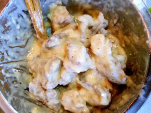 排骨焯水后,分别加料酒、少许盐、面粉、鸡蛋拌匀