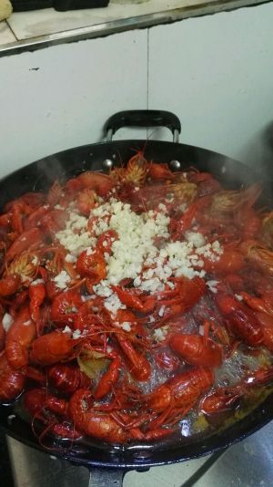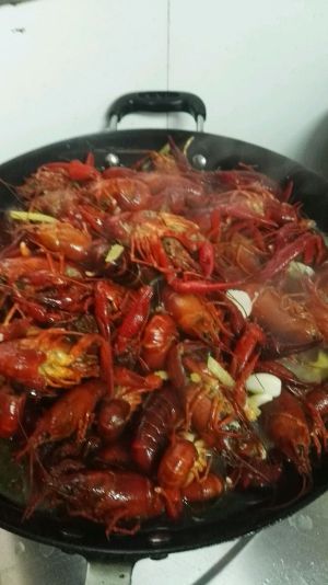 油下锅烧热,放花椒,干辣椒,姜蒜煸香。放入小龙虾翻炒三分钟