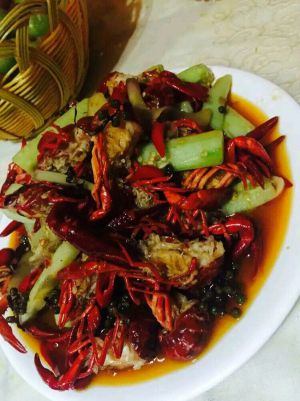 下入小龙虾一起炒(油多的叫炸,哈哈哈)