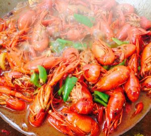 换大火,然后烧开后,放入生抽,糖,换中火烧20-30分钟,过程中如果啤酒不多了可以少加一些水,3-5分钟翻炒一次,防止粘锅。20分钟以后开始收汁,加入盐调味,加入耗油,继续翻炒,加入十三香粉。然后继续收汁。待汤汁还剩不多的时候放入青椒,提色提味,并且加入鸡精。出锅。非常好吃的一款小龙虾。
