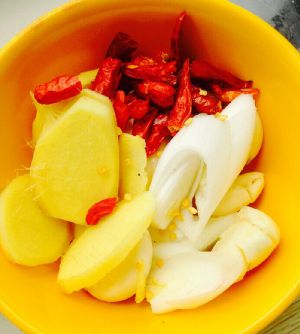 干辣椒剪碎,蒜切片,豆瓣一勺
