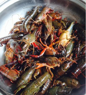 小龙虾放盆里清洗,这个时候天气比较热,买的时候都是活的,回来就可能有闷死的,一定要把死的挑出来扔掉