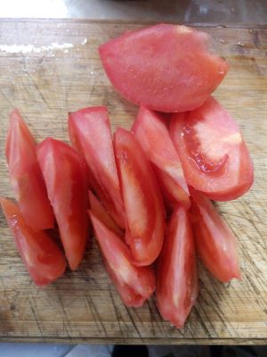 西红柿切块或者切丁,凭自己喜欢,切丁的话烫就更加入味。