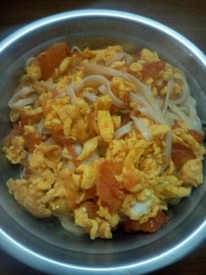 锅里放油 鸡蛋略炒盛出(我喜欢嫩一点的)