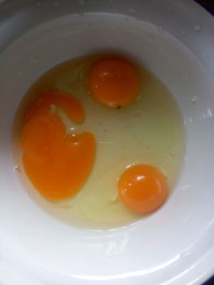 鸡蛋打碎倒在碗里并搅拌均匀,喜欢里面多的人可以多加一个。