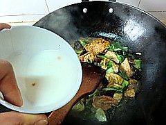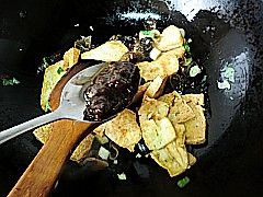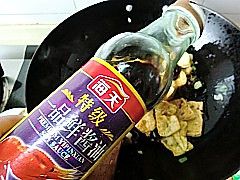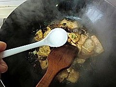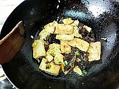 加入豆腐,加一勺豆瓣酱,翻炒均匀