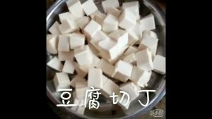 豆腐切丁,(千万不要一整块放下去,然后用锅铲弄小)