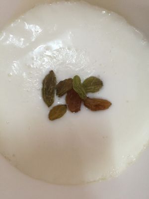 蒸好后出锅放入葡萄干,冰箱冷却后就可以吃啦,可以多做几个,有空就拿出来吃,很有营养哦