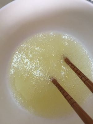 把放凉后的牛奶挑破奶皮,把牛奶倒进蛋清中,并加入砂糖搅拌均匀。 奶皮留在碗里!!