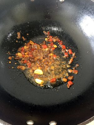 锅中倒少许油,放入姜末,蒜末,花椒,一小勺郫县豆瓣,老抽炒出香味