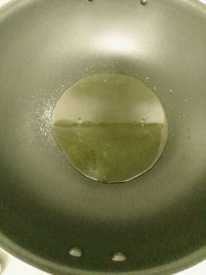 豆腐沿着锅边轻轻滑下去。开始小火油煎罗