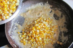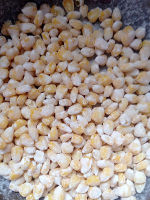 用红薯粉将每颗玉米粒均匀的裹上一层薄薄的雾。