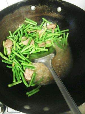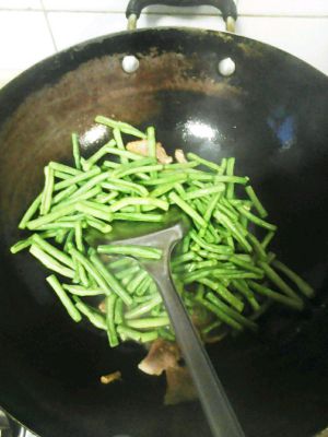 放入豇豆翻炒,到半熟