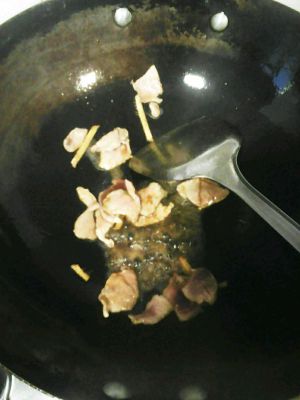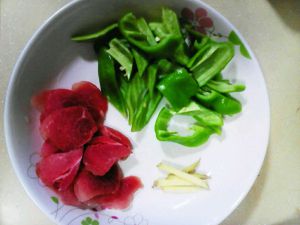 姜切丝,肉片,青椒片备用