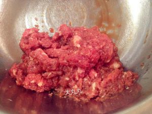 牛肉洗净切末,加入生抽、老抽、料酒腌制10分钟。