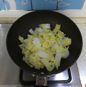 准备好原材料,白菜切段,年糕斜切片浸在冷水里待用。