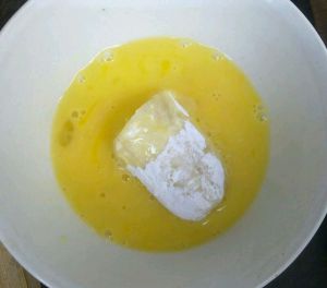 将鸡蛋打到切好的香蕉里,拌匀。在放入淀粉,拌匀。粘度跟胶水一样,就可以啦!