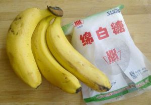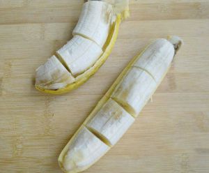 香蕉剥皮,滚刀切块(最好买直一点的)