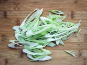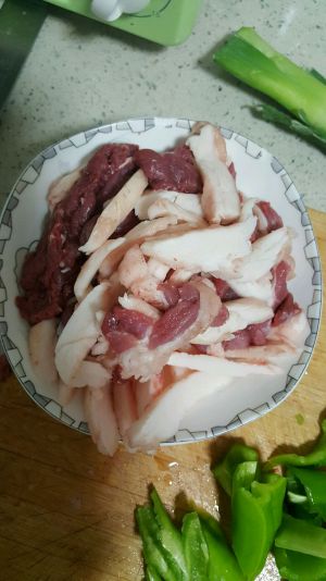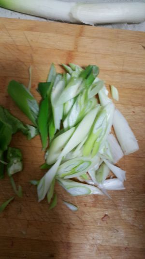 先将切成片的鲜羊肉用老抽料酒和淀粉腌制十五分钟,大葱切斜段备用
