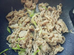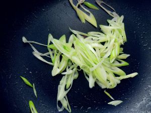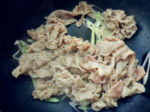 放入适量盐大火翻炒两分钟关火放少量鸡精即可,浓香葱爆羊肉就完成了