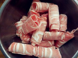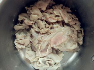 羊肉简单过水备用,不要时间太长,涮一下就OK了。