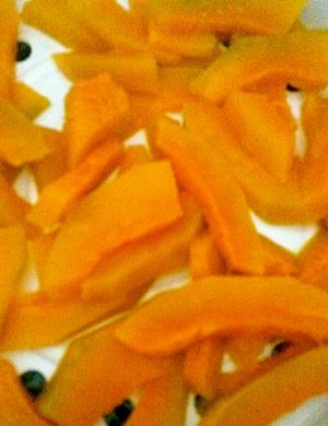 首先将南瓜蒸熟然后找个大汤匙把他们碾成蓉