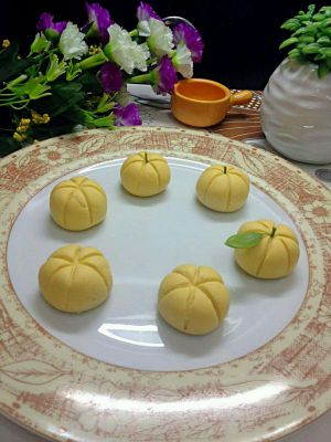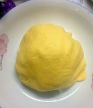 南瓜泥加入糯米粉和糖,合成不沾手的糯米团。糯米粉大家可以酌情增减,因为南瓜含水量不一样。