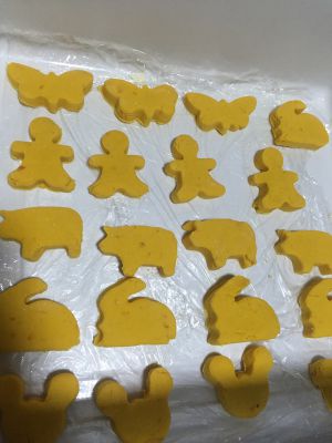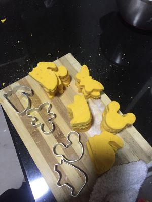然后放在磨具中,慢慢压平,没有磨具直接压扁面团就好了。