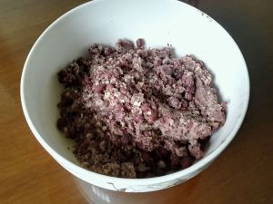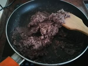 用料理机将红豆磨碎,或用擀面杖或者锅铲碾碎,如果想要口感更加细腻可用筛子过筛。