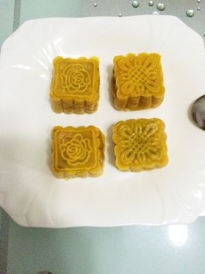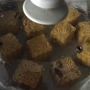 用月饼模具压成花。