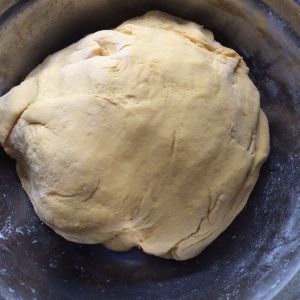 南瓜面团也团成略大的球,可以包住豆沙馅儿即可