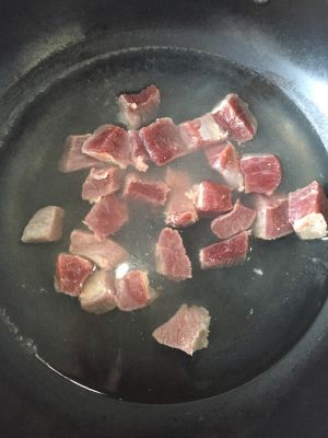 烧开,上面漂一层白沫,牛肉捞出用凉水冲洗。