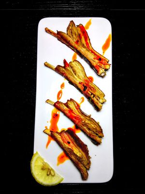 烤箱中取出羊排,刷上一层酱料,再次进烤箱,上下火190度,10分钟后取出换另一面刷酱再烤10分钟。