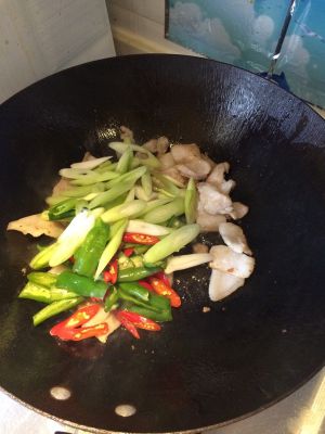 准备好芷姜片或姜丝、青红尖椒斜段、蒜苗段。如果喜欢吃酸辣味的朋友可以把姜和辣椒改成泡椒和泡姜,如果没有也可以加醋,不过醋跟泡菜的酸爽完全不一样,味道也有很大的差别