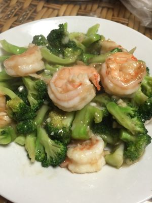 锅入油,油热后加入部分蒜末炝锅,然后加入西兰花翻炒,加生抽,然后加入炒过的虾球,再将剩余的蒜末加入后,加蚝油,最后倒入淀粉水翻炒出锅。