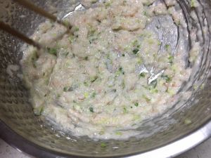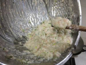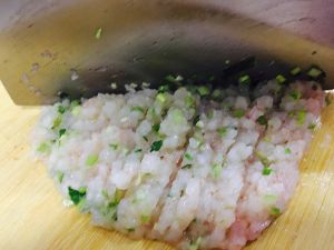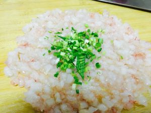 虾仁挑去虾线,剁碎